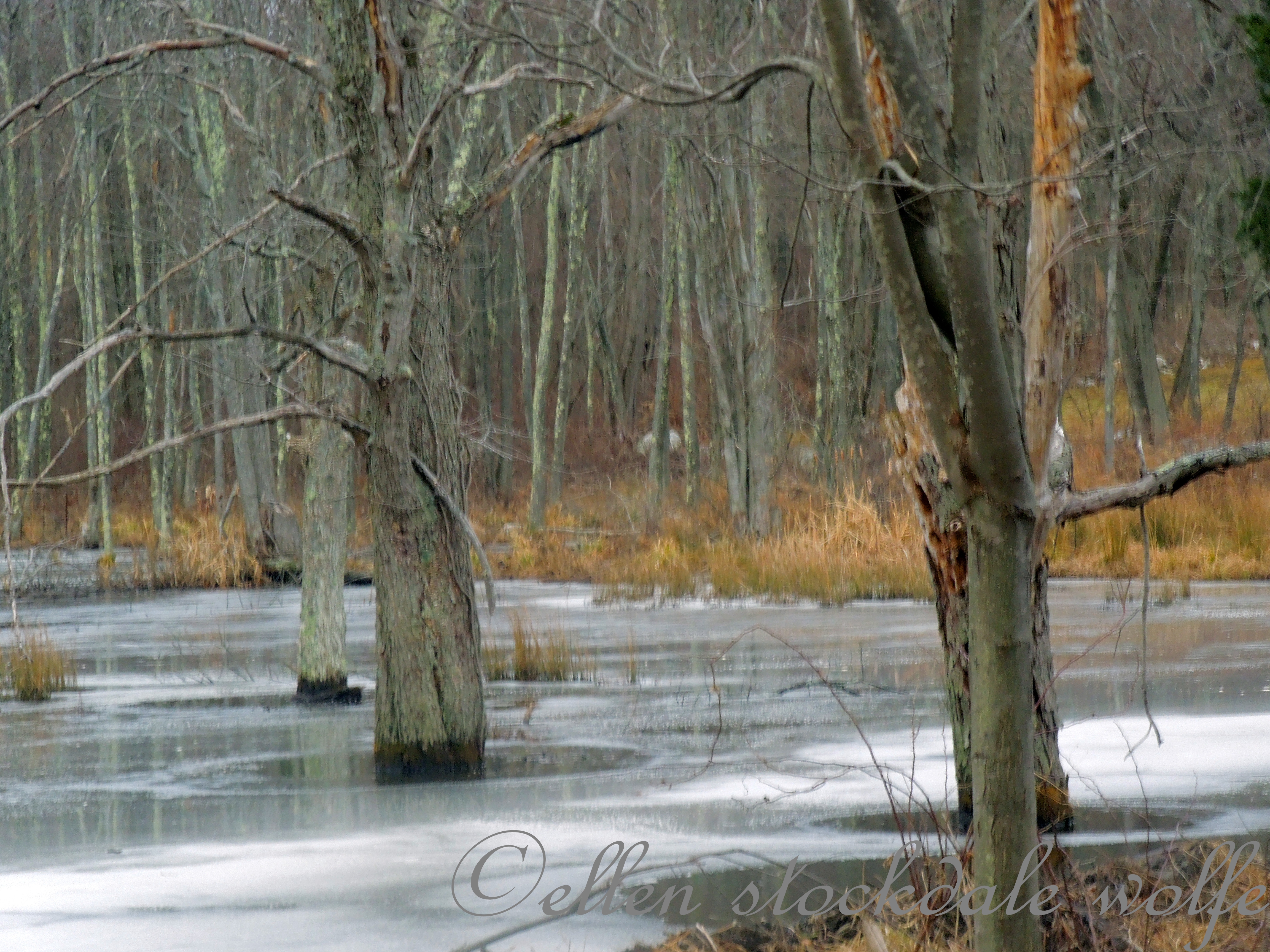 Above: the vernal pool not yet unfrozen and below: the YouTube video to hear the song of the Spring Peepers