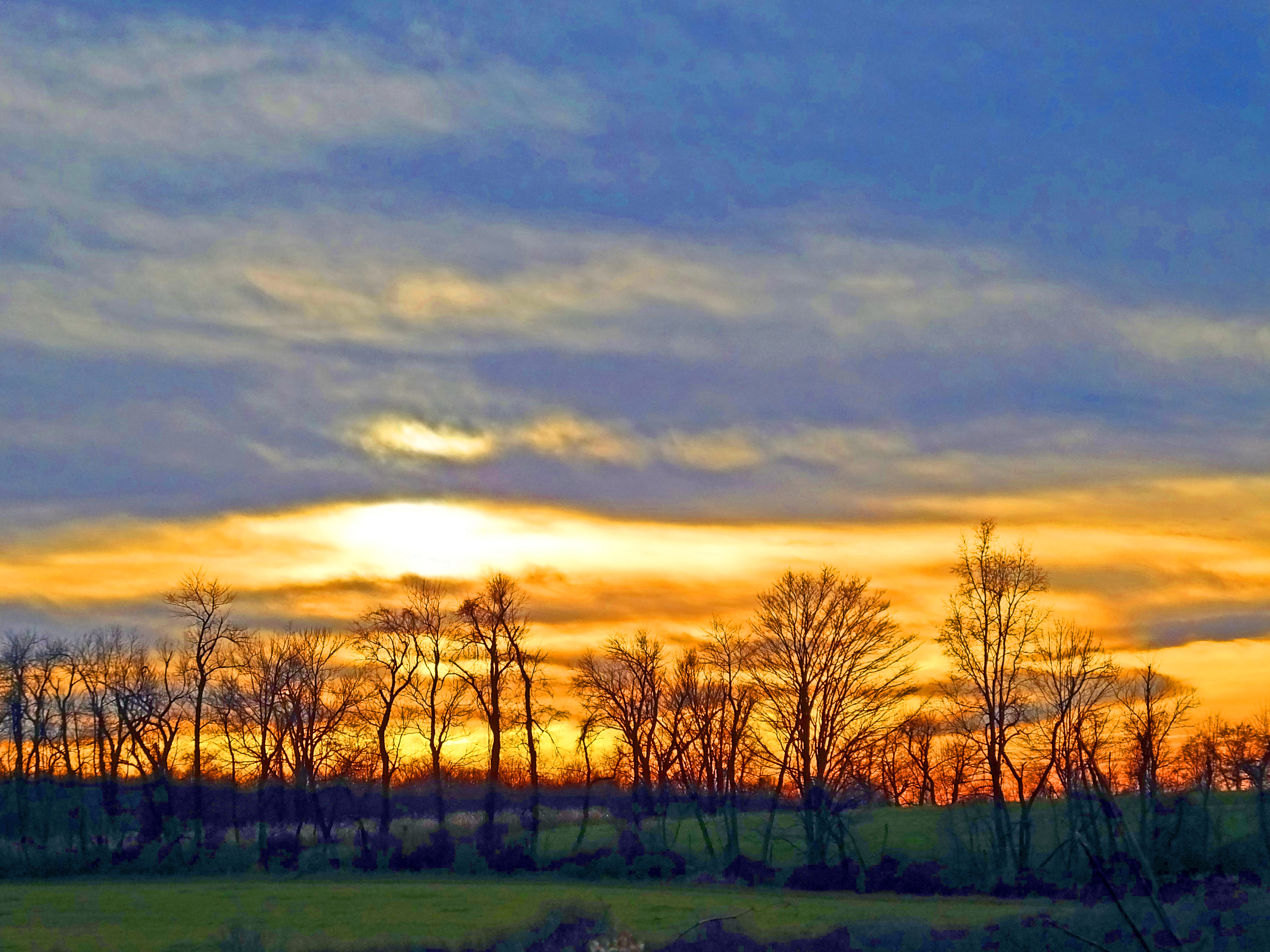 It is the colorful winter sky showing through, and showing off, the bare branches that woo me. The bare curvaceous branches are stark, dark lines against the bright of day and the inky sky of night. These resplendent creatures are living lines that explode. Branches tangle like the lines in a Jackson Pollock painting. Others curve in the sensuous lines of a Brancusi sculpture. Buxom tree trunks stand strong surrounded by their dead blossoms and their burgeoning offspring like a Renaissance Madonna. In truth these trees are not like art at all. Rather art imitates them– their beauty provides the timeless inspiration for artists, writers and poets of all ages and styles.