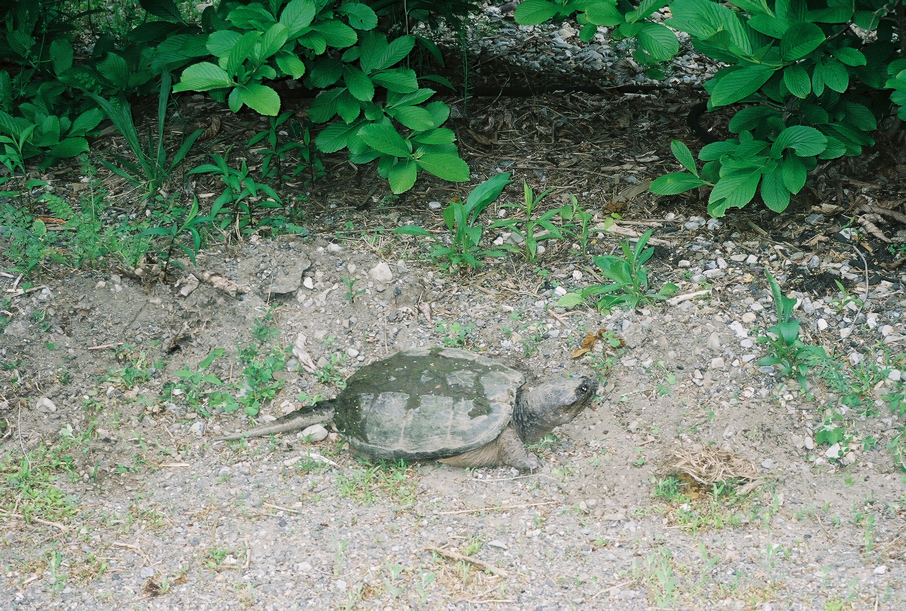 Last year I wrote about our special visitor, Shelley, who has appeared in our driveway around Memorial Day for the past three years to lay her eggs in the exact same spot. Shelley, to introduce her once again, is a large snapping turtle with a muddy, mossy shell and a long jagged tail. In my ignorance the first year she came I tried to save her from getting run over, while all the time unbeknownst to me, she was trying to find the right spot on the side of the road to lay her eggs. Good-natured, she took my meddling in stride and only gently snapped once after the third time I had returned her to the marsh out in back of our house in a snow shovel. Only then did I realize what she was up to. Shelley communicated simply and without malice. Shelley was a class act.