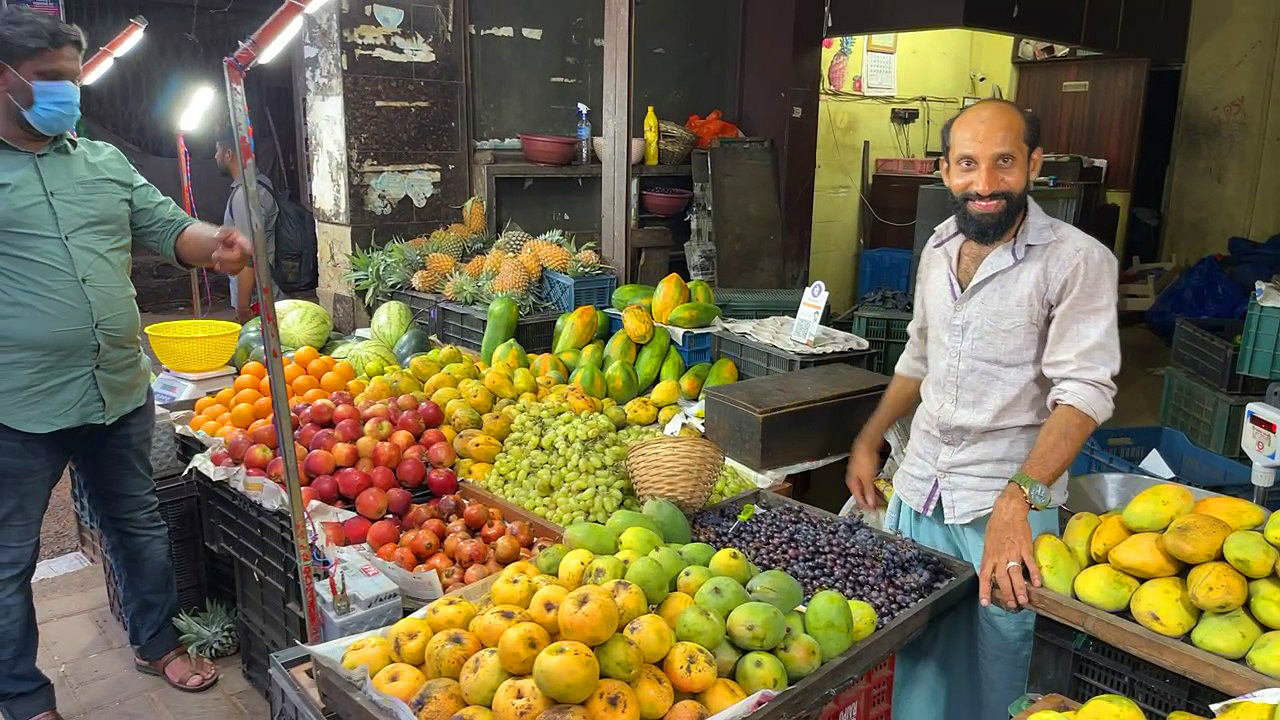 Happy Spirit in the Fruit Market of Palayam, Old Market of Calicut, Kerala, India
